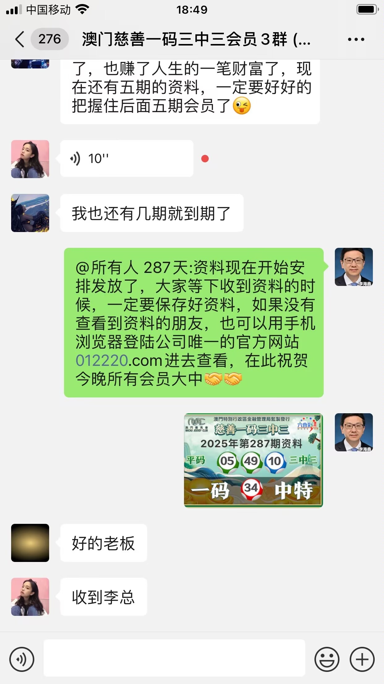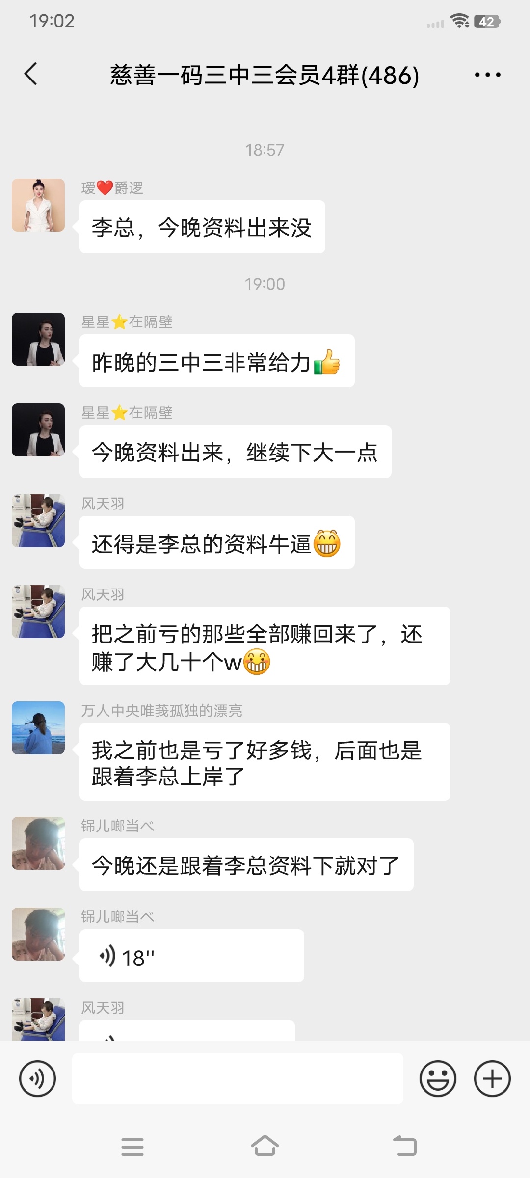 刚才跟李总聊了很多,还是决定入会,我期待今晚的大奖,就像李总说的一样这么准,真的期期大中以后天天有红包,合作愉快李总。 |