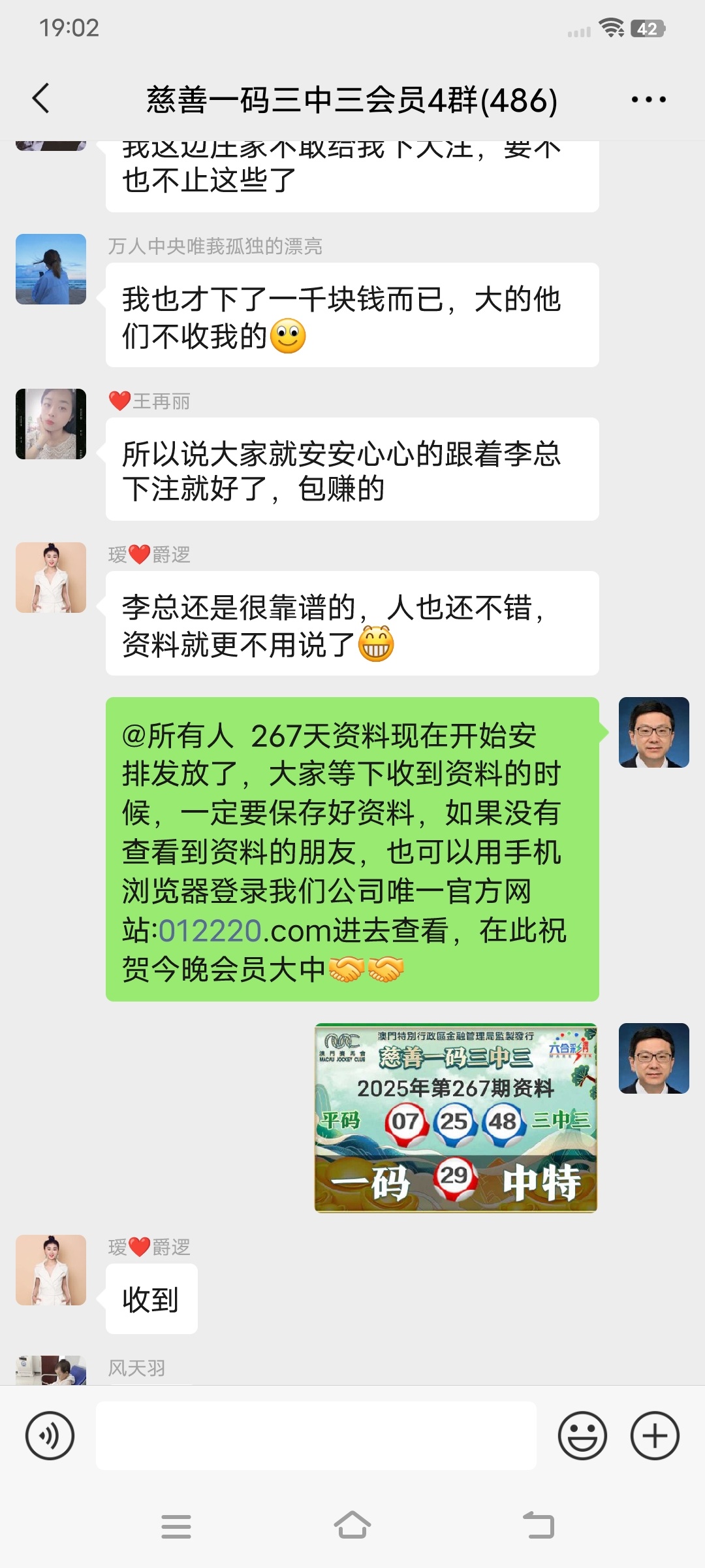今晚又是大中,李总是你给了我一份精准的资料,又说到做到,非常守信用,我购买你们的资料那么多期,从开始的忐忑到佩服,到现在的由衷信任,你的资料是期期大中,真是不得不佩服,你也帮助我赚了好多钱希望我们能继续合作愉快,期期继续大中,加油啊。 |