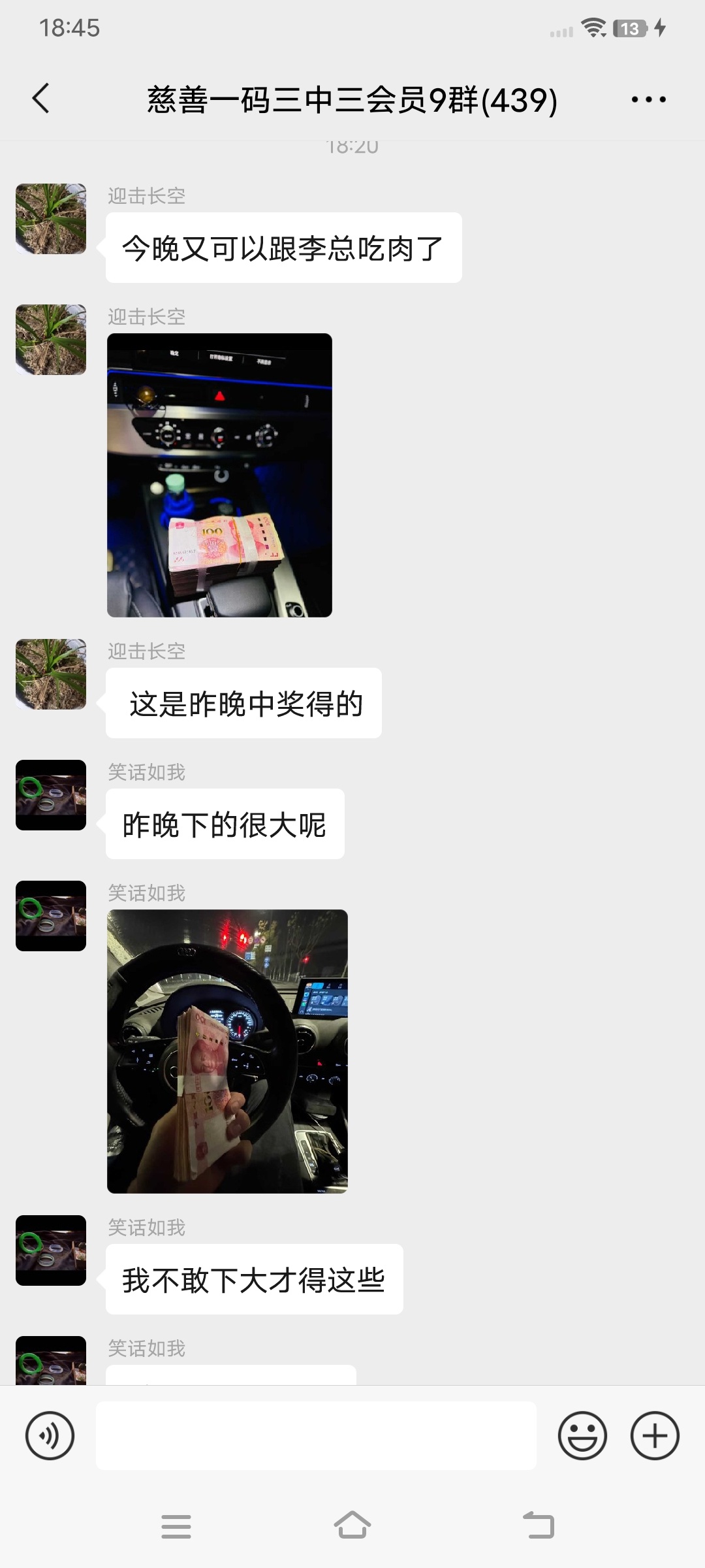 李总我跟你说昨晚我那五个庄家,每一个都有3万,哈哈哈哈哈,分开下注果然有好处啊,太厉害了,谢谢你,祝李总的慈善一码三中三顺顺利利,万事大吉! |
